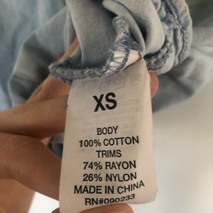 Chambray, collared button-up crop top by LA Hearts. Lace detail on top and tie at bottom. Distressed/faded look. This a great spring piece! 🌿✨