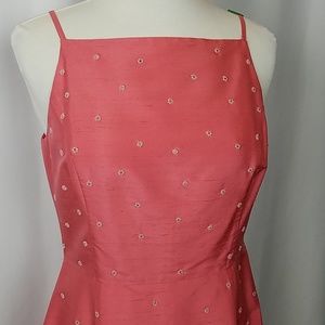 Ann Taylor silk shantung beaded dress with thin straps, square neck line, sheath. This dress is perfect for a special occasion. A real class act! Worn once and dry cleaned.