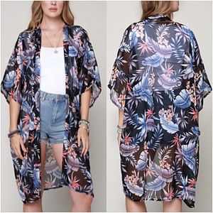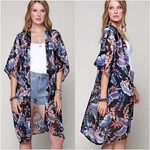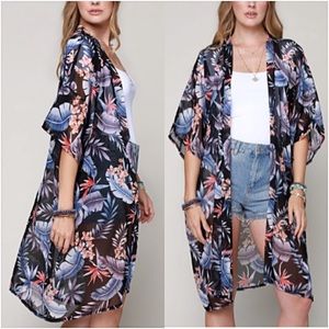 Absolutely gorgeous chiffon tropical kimono cardi with armholes. Add an instant bohemian vibe to your outfit with this beautiful piece. Also, works as a fabulous swim coverup.