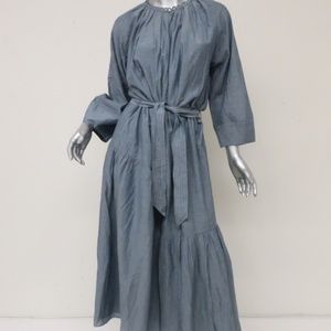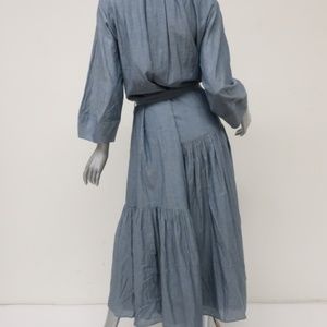 Apiece Apart Dress Stella Shirred Chambray Cotton
