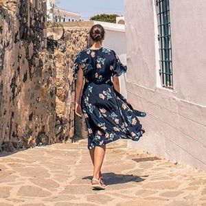 New with tags Nicholas the Label Piper midi dress size small (US 4). Button-front 100% silk dress in a lively floral print featuring a deep V-neck and short sleeves.