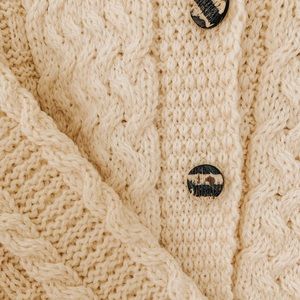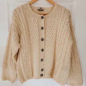 This beautiful cream colored sweater by Carraig Donn is made in Ireland and is 100% new wool. Retails for $95-115 on Amazon.