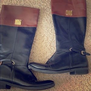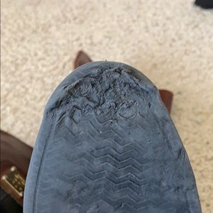 These boots have some wear and tear on them. They some slight discoloration and the sole was melted a little