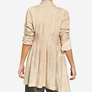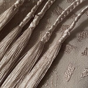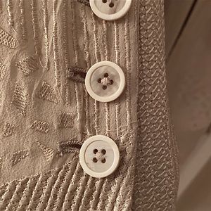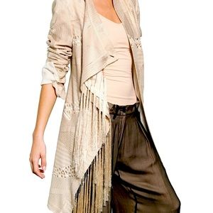 Stunning silk jacket very clasic excellent condition,button closure Viscose crepe lining . Made in Italy SIZE 36 Italian is all about eye-catching and statement pieces with elegant details, as shown Cut for a midi length, this cream jacket is adorned with a fringes all along that you can detach from the buttons body of the coat
