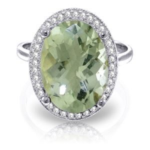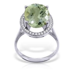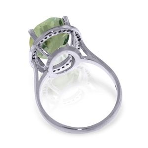 14K. GOLD RING WITH NATURAL DIAMONDS & GREEN AMETHYST (White Gold)