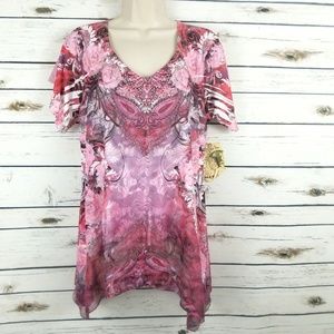 One World Pink Floral Shirt Top Small Short Sleeve