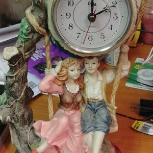 Beautiful clock battery operated 2 people on a swing perfect shape.