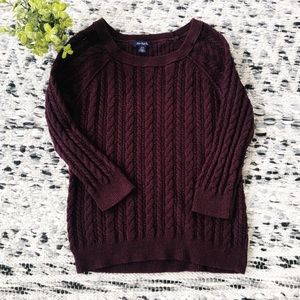 Burgundy sweater with braided detail by AEO. Gently used, good condition! ✨