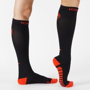 ION ME - Negative Ion Socks (One Pair) True Graduated Compression: 25-30 mmHg - Foot, Heel, Ankles 20-25 mmHg - lower calf area 15-20 mmHg - upper calf area Women and men, professional and college athletes, amateurs, nurses, doctors and thousands of others seeking a healthy lifestyle have discovered the amazing benefits of the ION ME Compression socks.