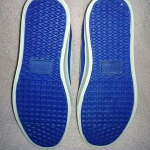 Brand new, never been worn. In excellent condition. Were bought as a gift and we're too small for my son. Blue and white colored with unique red and blue laces.
