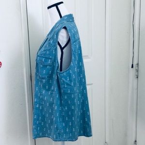 TRENDY Button-Down “Pineapple Themed” Sleeveless Top w/front Pockets.