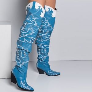 NEW🔥 Denim Blue Slouchy Embroidered Over The Knee Cowboy Cowgirl Western Boots