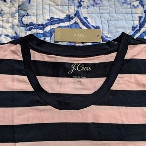 New with tag J. Crew muscle tank top with pink and navy stripe. Size medium. 70% Cotton 23% Lyocell 7% Elastane.