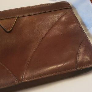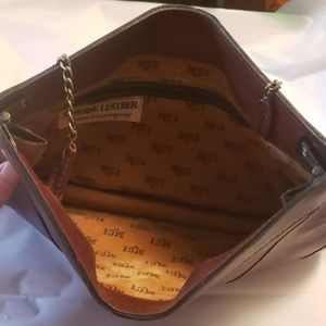 Vintage MCI supple brown leather purse with silver tone chain. 12"x8" opens up 8" at the widest point.