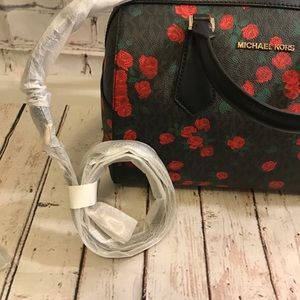 NWT Michael Kors Hayes red rose LG duffle bag