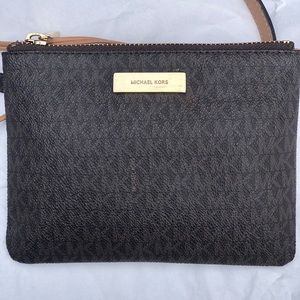 Michael Kors waist bag. Perfect shape except a few pen makes inside. Wonderful craftsmanship. It’s great to stash your phone and keys and run out for the day.