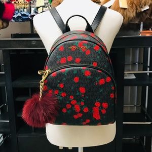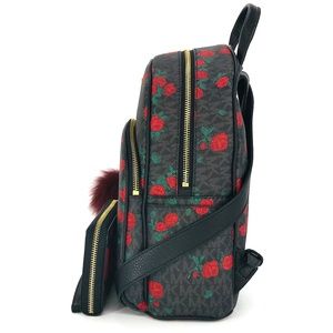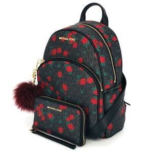 Michael Kors Abbey Medium Floral Backpack with Matching Wallet and Fur Key Charms