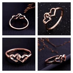 NEW!💙💎ROSE💗GOLDEN💛JOINED💛HEARTS💗RING💎💙SZ 7