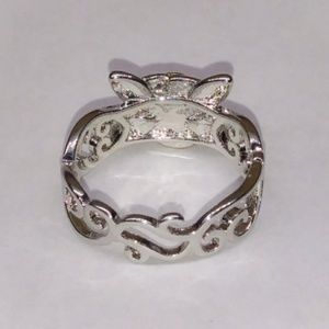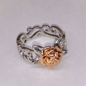 An incredible delicate flower ring. What a perfect ring that has a viney design around the band made of 925 fill with a beautiful dainty 14k rose gold flower. Very attractive uniquely created. Works well with just about any attire. A Simply Beautiful addition to your accessory wardrobe. 100% brand new and a boutique.