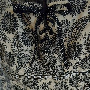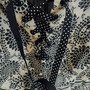 Scoop neckline features ribbon lace up