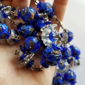 Relisted - long Chunky Art Glass necklace blue silver flapper