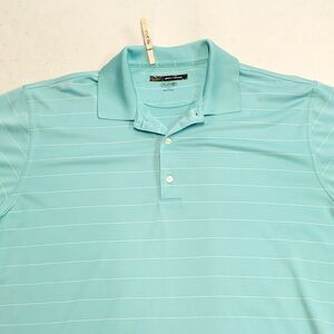 Calvin Klein Polo Shirt Men's Short Sleeve Striped Blue 2-Button Medium.