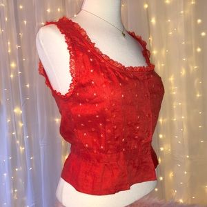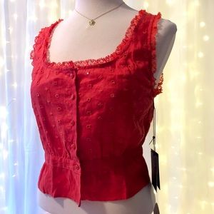 Sleeveless Career or Casual Luisa Eyelet Linen Top In fiery orange red. SIZE 4
