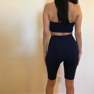 Brand new. Never worn. Navy Bike Shorts & Tube Top Set. Also available in Burgundy. Lots of stretch. Model is wearing a small for reference. No trades. Bundle for discount.