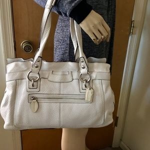 Fabulous LARGE version of the COACH PENELOPE Carry-All bag, made from supple parchment white pebbled leather, with silver hardware.
