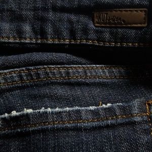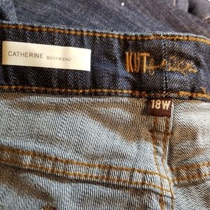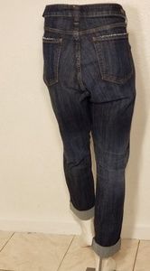 Stretch-denim boyfriend jeans in a whiskered wash are cut with a hint of slouch through the hips. Full-length legs that can be rolled as you please.