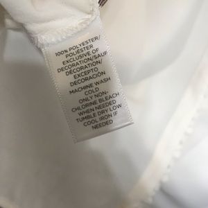 100% Polyester. Ribbon straps with ruching/pleated detail just below. Hidden button front closure. Lightweight, silky, flowy and perfect for summer!