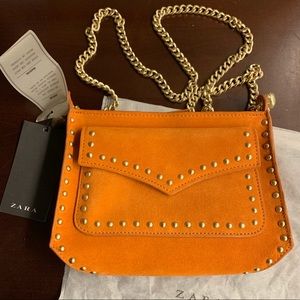 Rare! Zara Orange Suede Leather bag with gold chain and studded detail and it’s new with tags!