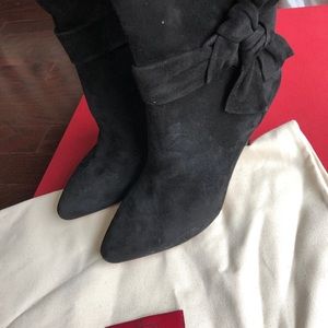 Never used Valentino Garavani suede bootie with large self-tie bow.
