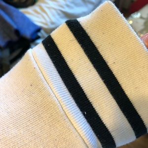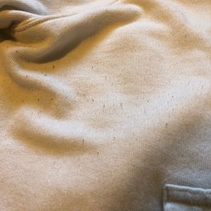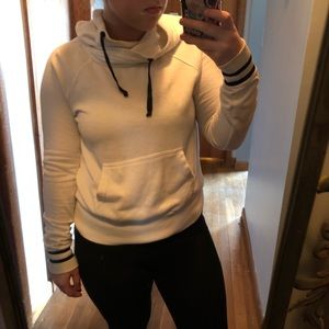 Slightly worn but in great condition. A unique design neck & very soft! no stains but some little fuzz balls are on the sweatshirt. I usually wear a medium so it looks a little small on me but still fits! would fit best on a small. I do accept offers but no trades! (: