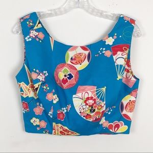 Turquoise Geisha Fans cropped tank top by Trashy Diva byCandace Guinn