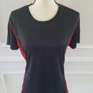 Zorrel Women's Color Block Active T-Shirt. Red and Black. Large