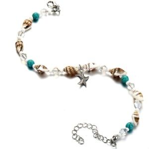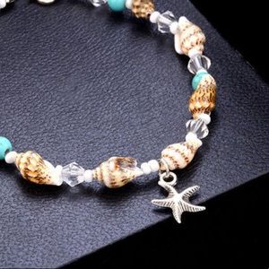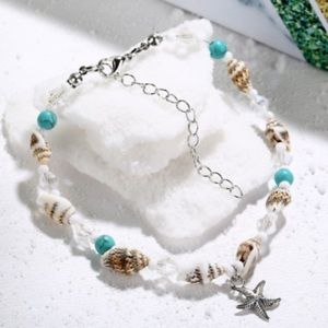 NEW! Silver-tone starfish and shell beaded ankle bracelet! Adjustable with attached extender. SUPER CUTE!