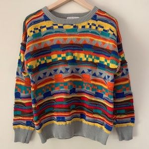 Super cool vintage 80s Coogi style textured multicolor sweater. Brand is Leoniak.