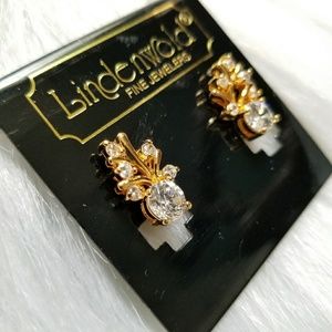 New on the original store card! Dainty Lindenwold clip earrings with sparkly clear gems in gold tone metal. Earrings are in excellent condition, store card shows some wear. From a smoke free home:)