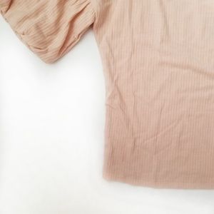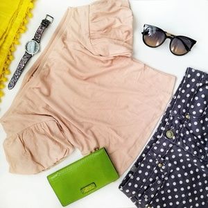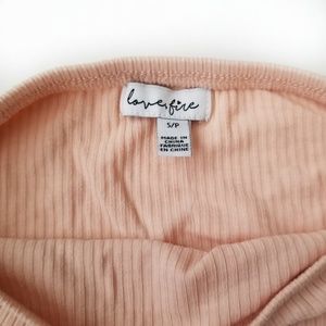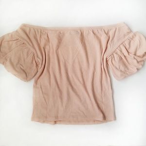 NWT Love, Fire off the shoulder short sleeve light pink top. Available in size S, M, and L. Approximately 14" length (size M). Machine wash.