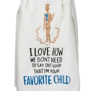 100% Cotton Dish Towel with humorous graphic "I Love How We Don't Need To Say Outloud That I'm Your Favorite Child" NEW WITH TAGS