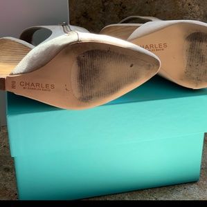 Only worn once.. they look like they’re brand new. Charles by Charles David nude ankle “India” bootie. Wood stacked heel, side zipper, approximately 4 1/2” heel, pointy toe, true to size.