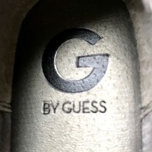 These flats from G By Guess are a women’s 8.5. Outer design is 4 parts w different patterns all metallic & faux leather besides back fabric. Round toe is a cracklings grey/silver snakeskin print. There is a silver decorative bow w logo imprint. Moving back from toe is a section of gold/silver snakeskin. mid section is a solid mirror like silver, & the back wrap around heel fabric is sparkly grey leopard print. Slight pad insoles. Black rubber bottom soles w traction & less than 1/4” heel
