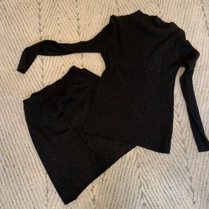 Mock neck sweater set charcoal grey