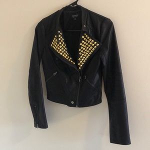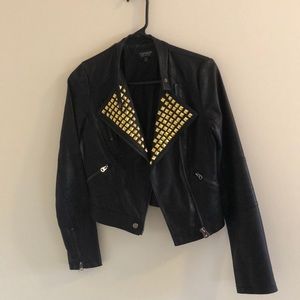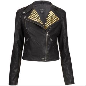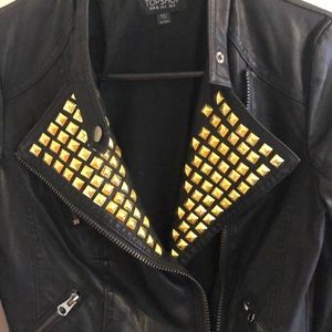 TopShop black faux leather jacket studded size 4