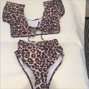 Fabulous chic leopard swimsuit. Top has padding and has a nice sexy look. Tops run on the smaller side. High waisted, cheeky bottoms 5⭐️⭐️⭐️⭐️⭐️RATED Vacation, pool, beach, holiday