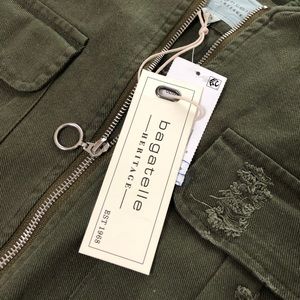 ❌SOLD❌Bagatelle Green Distressed Bomber Jacket