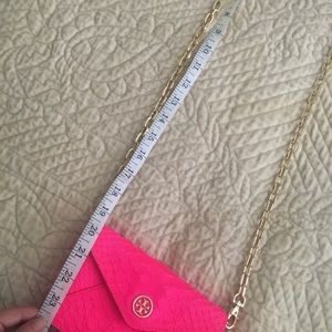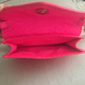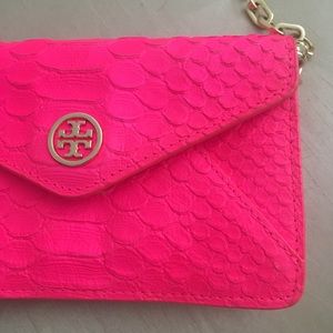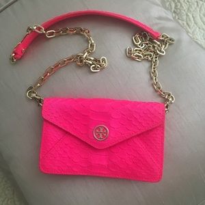 Beautiful Neon Pink Tory Crossbody, genuine snakeskin, detachable chain, for a cute clutch look. Chain is shiny and new.