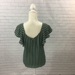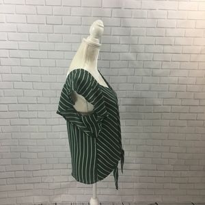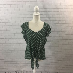 NWOT Green Striped Flutter Sleeve Tie Front Top