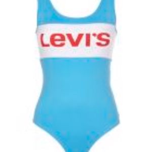 Logo Print Swim Suit from Levi's: Light Blue Logo Print Swim Suit with scoop neck, sleeveless design and clasp fastening